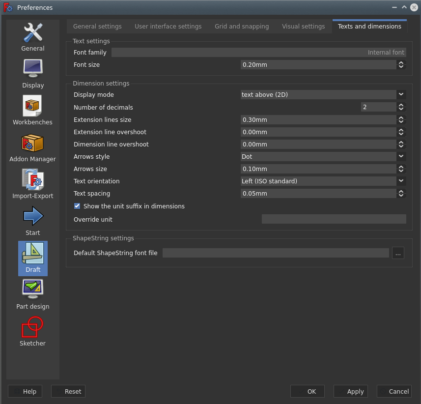 @ctjctj can confirm After setting imperial units I still see: Preferences > Draft > 'Text and Dimensions' the units for the preferences are in mm OS: Ubuntu Core 20 (KDE/plasma) Word size of FreeCAD: 64-bit Version: 0.20.27148 (Git) Build type: Release Branch: master Hash: 88ded38ca16e38a556e432a651792c56a65fc80d Python version: 3.8.10 Qt version: 5.15.3 Coin version: 4.0.0 OCC version: 7.5.2 Locale: English/United States (en_US) |