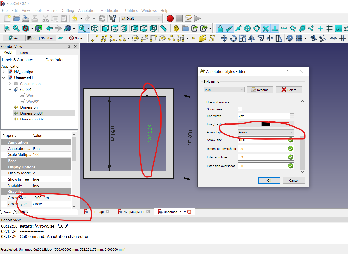 | Description | There are only 3 Arrow styles out of 5 available in Annotation styles form and Dimension styles are incorrectly being applied. It looks like there is an issue with arrow style property text values and their mapping. At the moment there is such mapping: "Dot" -> Dot, "Arrow" -> Circle, "Tick" -> Arrow. Initially reported here - https://forum.freecadweb.org/viewtopic.php?f=8&t=52554 | ||||
