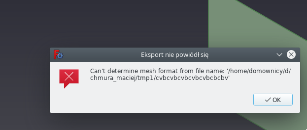 I made some changes to the export process that got merged in build 23931 ( FreeCAD master e3f88474 ) -- that was only three days ago, so this may already be fixed. When the next appimage is available can you update and give it a try? (as a side note, I see that error message is not translated... I'll look into that now.). Edit: added link to commit directly -Kunda |