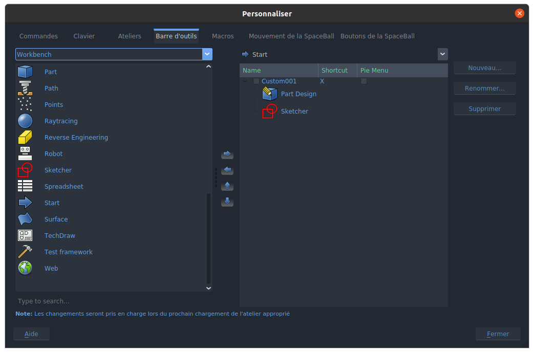 | Description | hi, when i use a specific function in Pie menu, Freecad crash. for exemple, in workshop Start, i call in Pie menu "PartDesign" => crash in Partdesign, i call in Pie menu "Sketcher" => crash for other function, Pie menu don't crash. for exemple, in Sketcher, i call in Pie menu "symetri" => okay | ||||